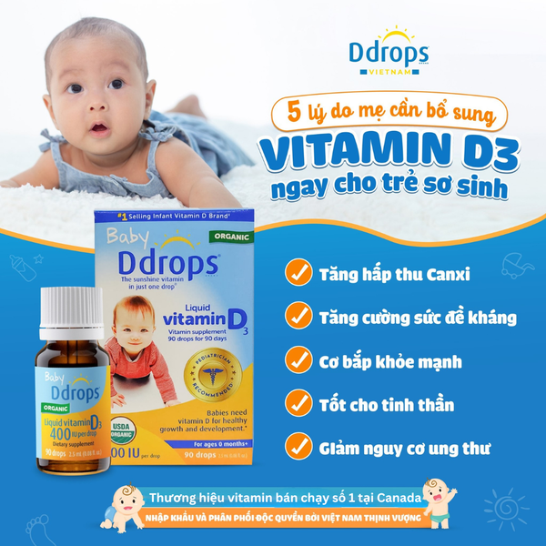Gợi ý: Vitamin D3 Ddrops – dạng giọt, organic chuẩn Canada, được bác sĩ nhi khuyên dùng cho trẻ sơ sinh
